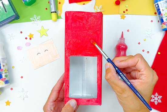 Helyezzünk a dobozba egy elemes mini fényfüzért, és el is készült a saját készítésű Mikulás dekorációnk!