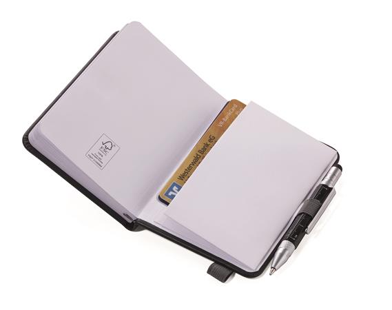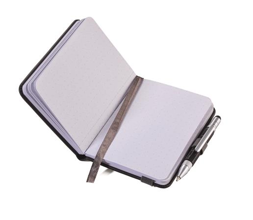 Jegyzetfüzet, exkluzív, A7, pontrácsos, 64 lap, keményfedeles, fekete golyóstollal, TROIKA "Lilipad+Liliput", fekete