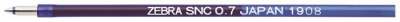 A Zebra SNC betét a bLen golyóstollhoz való 0,7 mm golyóátmérővel rendelkező 0,24 mm írásvastagságú betét.