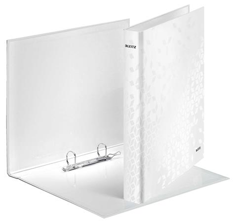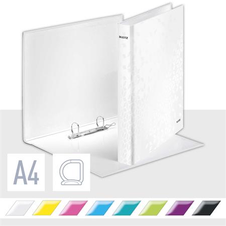 Gyűrűs könyv, 2 gyűrű, D alakú, 40 mm, A4 Maxi, karton, LEITZ "Wow", fehér