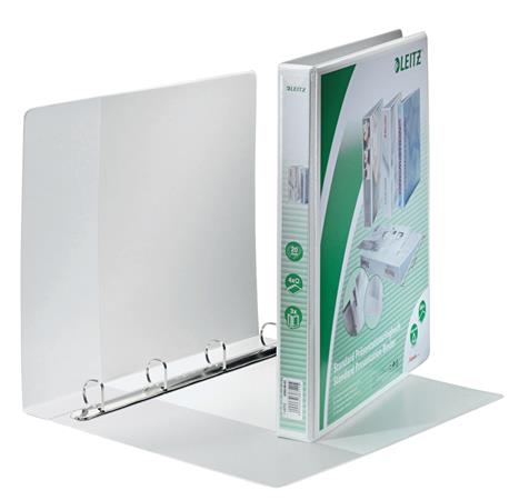 Gyűrűs könyv, panorámás, 4 gyűrű, D alakú, 38 mm, A4 Maxi, PP, LEITZ, fehér