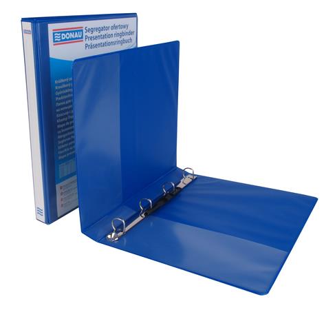 Gyűrűs könyv, panorámás, 4 gyűrű, D alakú, 44 mm, A4, PP, DONAU, kék