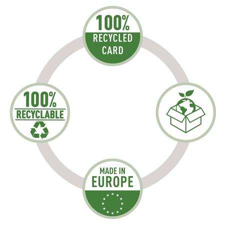 Kiváló minőségű, környezetbarát iratrendező 100%-ban újrahasznosított és 100%-ban újrahasznosítható kartonból, FSC és Blue Angel tanúsítványokkal.