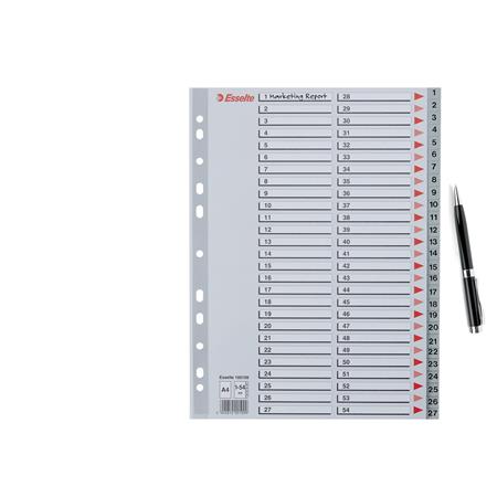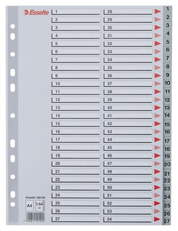 Regiszter, műanyag, A4, 1-54, ESSELTE, szürke