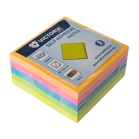 Öntapadó jegyzettömb, 50x50 mm, 250 lap, VICTORIA OFFICE, neon