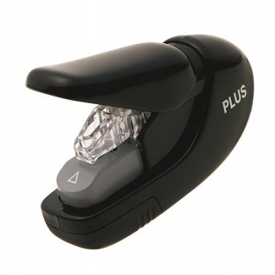 Kapocs nélküli tűzőgép, kézi, 5 lap, PLUS, fekete