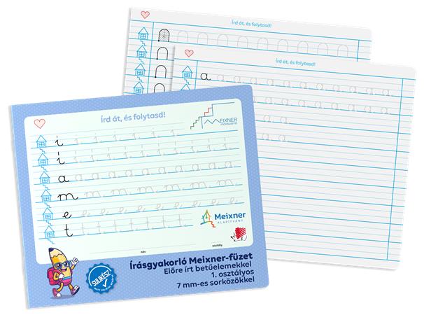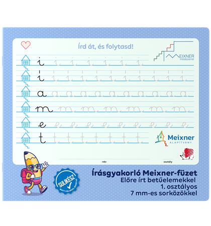 Írás gyakorló füzet az 1. osztályosok számára, amely a Meixner Alapítvány együttműködésével és ajánlásával jött létre. Speciális vonalazású és kialakítású füzet alkalmas a Meixner-féle írás tanulás elsajátítására és gyakorlására.