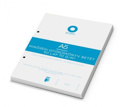 Gyűrűs könyv betét, A5, vonalas, 50 lap, BOXER, fehér