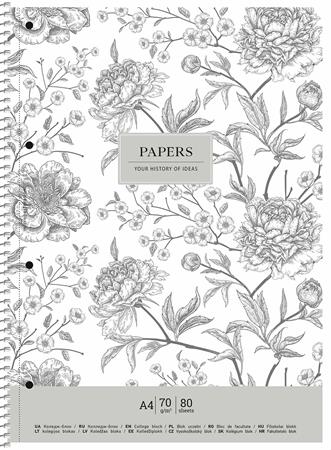 Spirálfüzet, A4+, vonalas, 80 lap, SHKOLYARYK "Vintage flowers", vegyes
