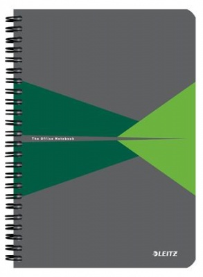 Spirálfüzet, A5, vonalas, 90 lap, PP borító, LEITZ "Office", szürke-zöld