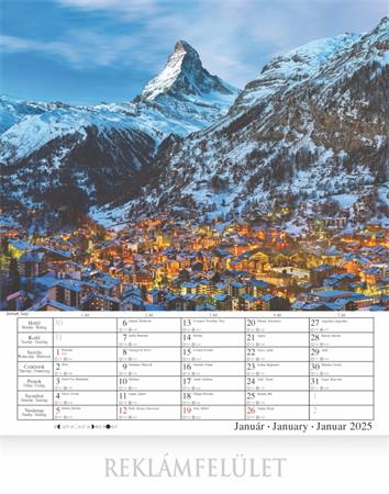-naptár rész: magyar, angol, német nyelven, magyar ünnepek és névnapokkal, napkelte, napnyugta és holdállás feltüntetésével
