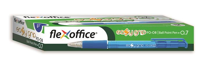 Golyóstoll, 0,4 mm, nyomógombos, FLEXOFFICE "EasyGrip", piros