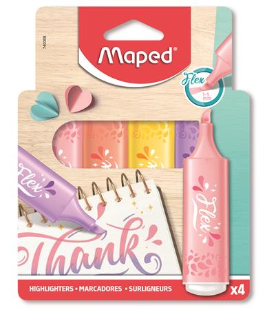 Szövegkiemelő készlet, 1-5 mm, MAPED "Fluo Peps Flex Pastel", pasztell szín, vegyes készletek