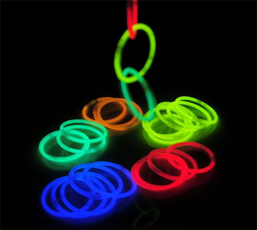 Karkötő, sötétben világító, műanyag, 100 db, vegyes színek
